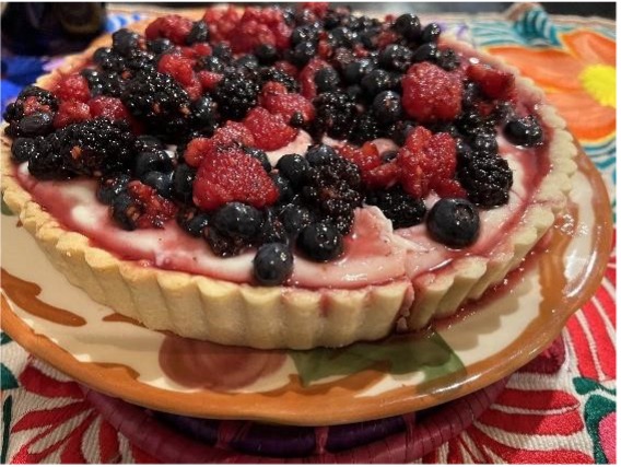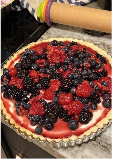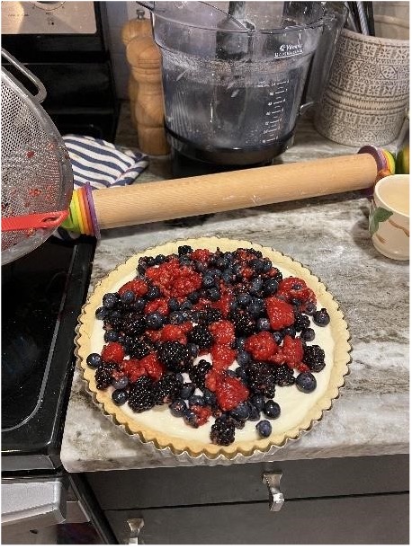 Make sure your crust is cool, your pudding is chilled, and your berries are properly mascerated and strained. Your tart tin allows you to pop the tart right out, exposing a beautiful crust that you made. Viola! You’re done making a sumptuous and decadent tart.