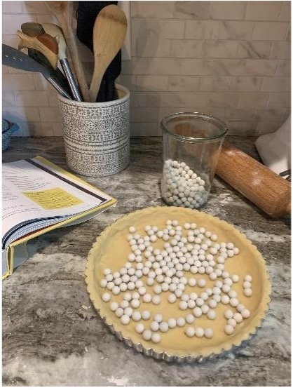 N.B.: This recipe requires a food processor, tart tin, rolling pin, and sauce or sauté pan. Pie weights are incredibly useful, but beans can be used instead.